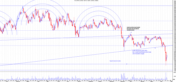 AFTER: This had a false breakout to the upside but followed this with a proper breakout to the down side and has moved nearly 1000 points. Trading range target got hit pretty quickly. This share has a habit of moving fast, This was originally tipped for a short, back when this was in 6760 from a rounded top formation, This is where it is today: